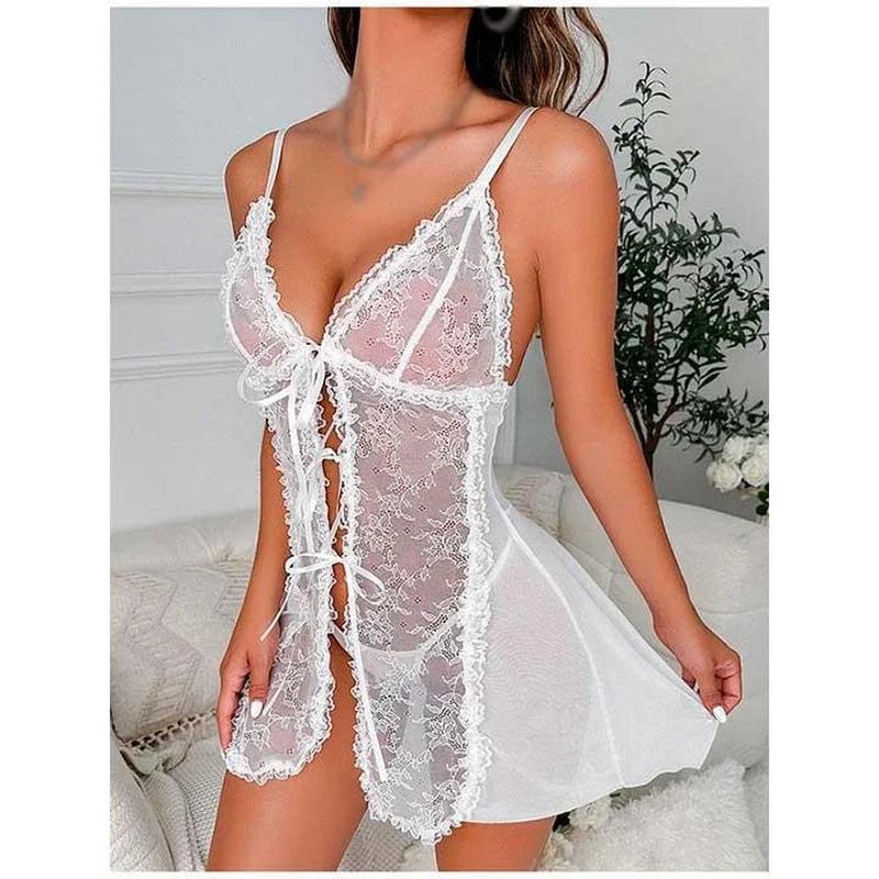 Спокусливий пеньюар білий — S/M — Еротична білизна