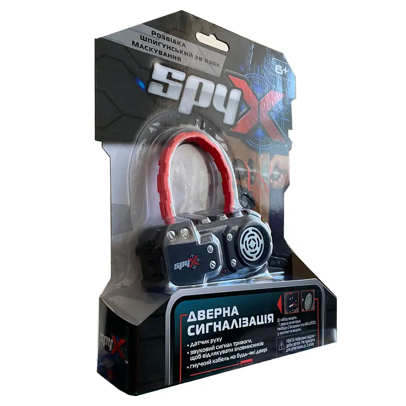 Дверна сигналізація - це справжня знахідка та захист для шпигуна! Дитина зможе самостійно встановити її на ручку дверей або прикріпити до свого секретного рюкзака для захисту своїх речей! Як працює сигналізація?Для початку її необхідно прикріпити до ручки дверей за допомогою гнучкого кабелю, встановити вимикач у положення ON. Червоний світлодіод блиматиме.Це означає, що пристрій почне працювати через 3 секунди. Ви можете перевірити сигнал тривоги, покрутити ручку дверей або посунути пристрій з боку в бік.Звуковий сигнал пролунає через динамік і автоматично вимкнеться. Дверна сигналізація захистить особисту кімнату дитини, секретний об'єкт під час гри чи приміщення шпигуна від вторгнення.Іграшки для дітей віком від 6 років. Для використання потрібні 2 батареї типу ААА(LR03), які не входять до комплекту.