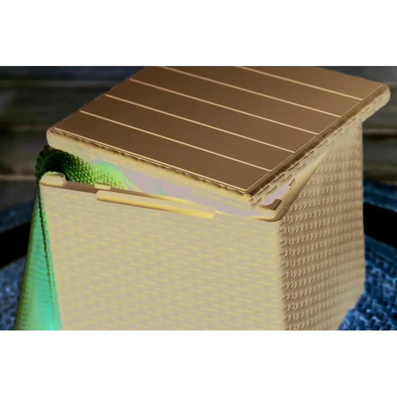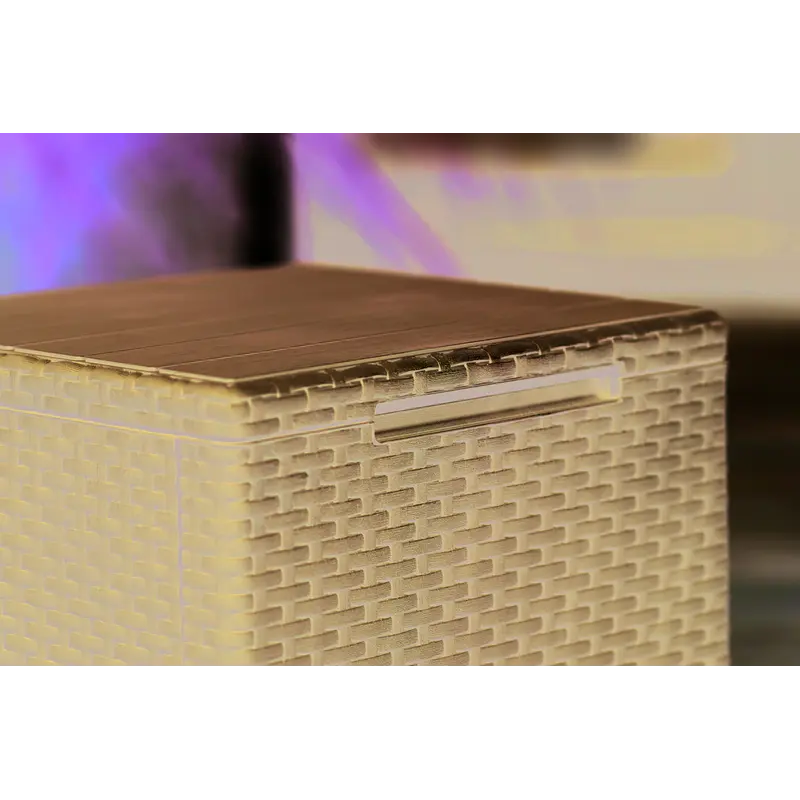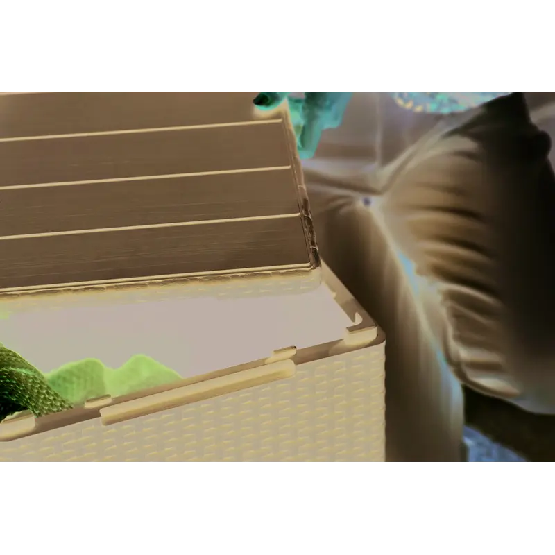 Завдяки якості використаних матеріалів виріб поєднує чудову функціональність та ергономічний дизайн. Стіл-скриня не піддається ржавінню та гниттю завдяки неметалічній рамі. Матеріал включає водонепроникну обробку, а також стійкий до УФ-випромінювання - колір не вигорає й не тьмяніє. Стіл-скриня Keter Vigo захоплює витонченою стилізацією під плетений ротанг та міцною і легкою у догляді конструкцією із пластику, що має високу зносостійкість.