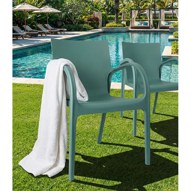 Гладка поверхня легко очищається і не вимагає складного догляду. Широке сидіння, висока спинка і підлокітники забезпечують комфортну посадку. Стільці можна штабелювати для зручного зберігання. Модель підходить для домашнього та комерційного використання.