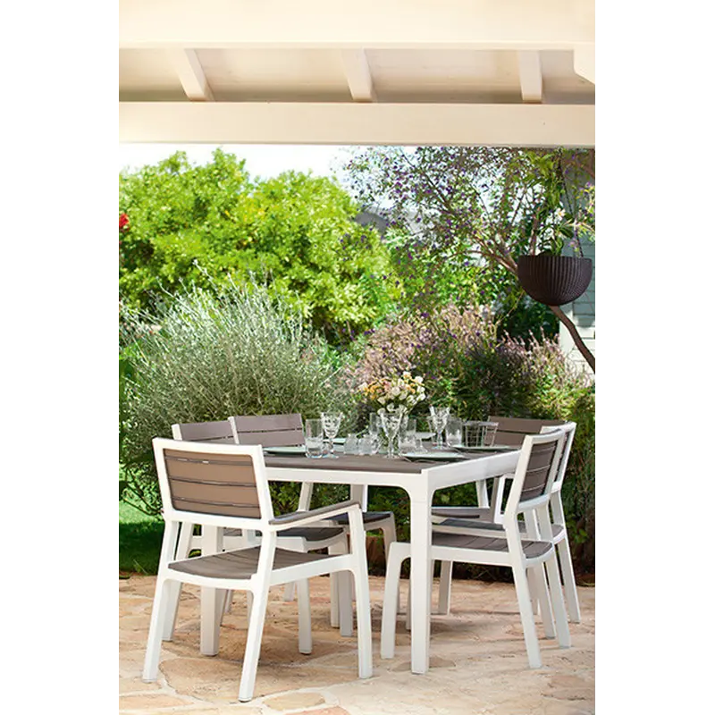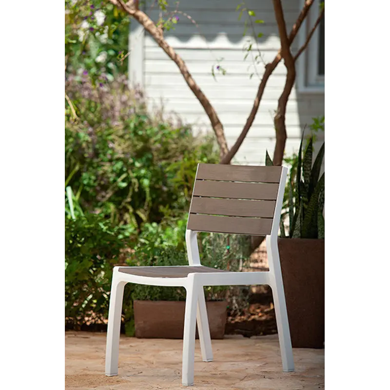 Сучасний за формою і зручний у використанні стілець Harmony стане ідеальним доповненням для присадибної ділянки, тераси, а також для інтер'єру будинку. Зручна спинка і сидіння, панельна вставка з фактурою, що нагадує поверхню деревини, є безсумнівними перевагами даної моделі. Стілець легко збирається, чиститься і стійкий до впливу погодних умов.