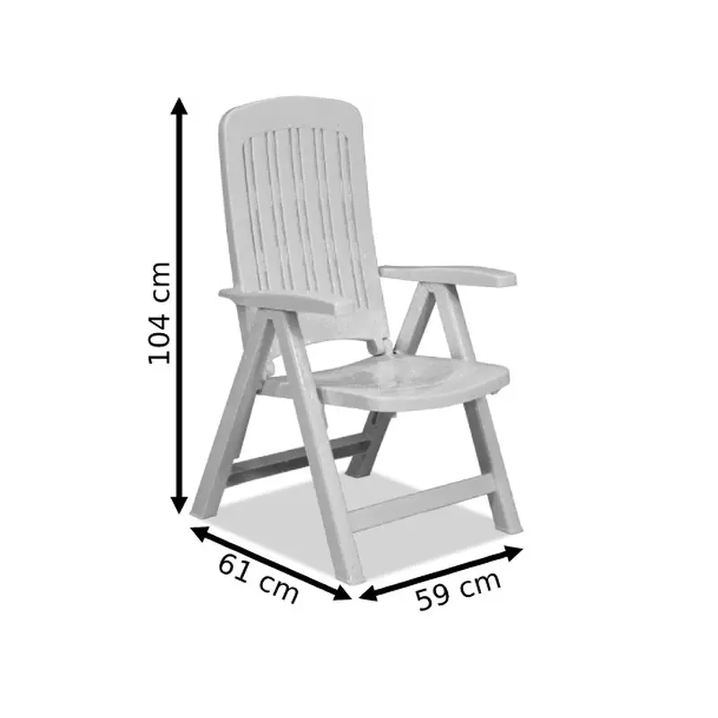 Механізм регулювання кута нахилу спинки в 5-и положеннях (1 - вертикальне; 2-3-4 - проміжні; 5 - майже горизонтальне) та широкі підлокітники з гладкого пластику забезпечують надзвичайно комфортний відпочинок: прийняття сонячних ванн, можливість читати книгу, пити і їсти. Висока ергономічна спинка задовільнить комфортом, а конструкція з отворами попереджає затримання вологи та забезпечує ефективну циркуляцію повітря. Виріб не піддається ржавінню та гниттю, завдяки неметалічній рамі. Матеріал включає водонепроникну обробку, а також стійкий до УФ-випромінювання — колір не вигорає й не тьмяніє. Завдяки складаній конструкції стілець Carmen зручний і компактний у транспортуванні та зберіганні. Гладка глянцева поверхня виробу передбачає легке миття та чищення.