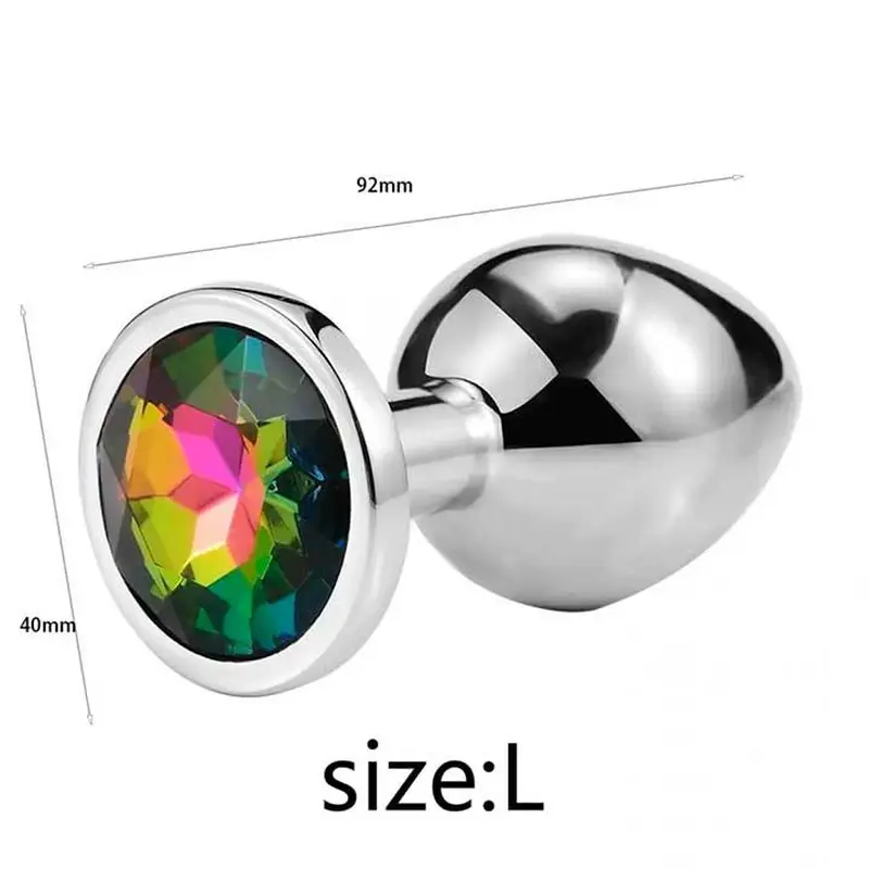 Сталева анальна пробка з кристалом Rainbow — 4x9 (см) — Анальні іграшки