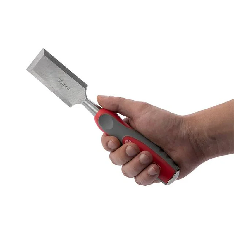 Стамеска виготовлена з якісної загартованої вуглецевої сталі, вона міцна та зносостійка. Металевий наконечник на торці ручки дозволяє завдавати ударів молотком або киянкою та прикладати більше сили для інтенсивнішої вибірки матеріалу. Оптимально заточена різальна крайка дозволяє відразу ж розпочати роботу.