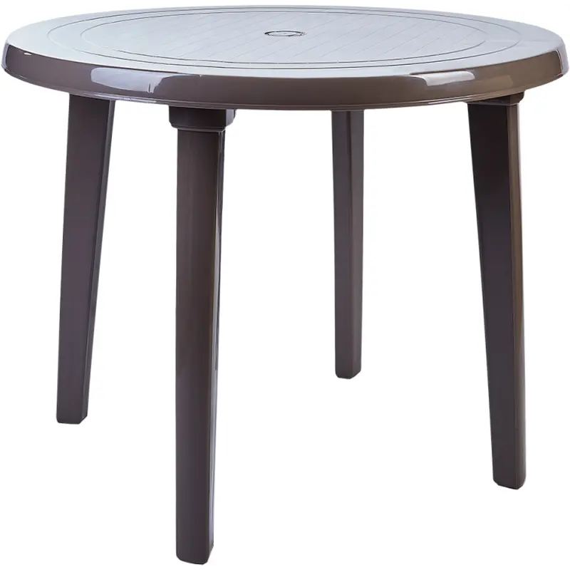 Гладка поверхня легко очищається і не вимагає складного догляду. У стільниці передбачено отвір для парасольки із захисною заглушкою. Знімні ніжки спрощують транспортування і зберігання.
