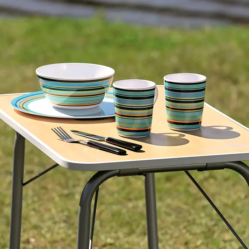 Насолоджуйтесь романтичною вечерею під зоряним небом за розкладним столом Easy Camp Caylar Brown (540027), розрахованим на двох. Надміцна сталева рама має чотири поперечні опори, які забезпечують стійкість у вітряний день. Ламінована стільниця легко миється, але не слід залишати стіл під сильним дощем або на спекотному сонці. Ніжки столу складаються після використання.