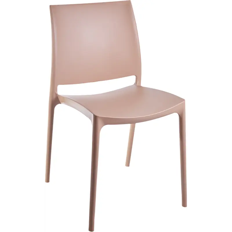 Гладка поверхня легко очищається і не вимагає складного догляду. Широке сидіння та висока спинка забезпечують комфортну посадку. Стільці можна штабелювати для зручного зберігання. Модель підходить для домашнього та комерційного використання.