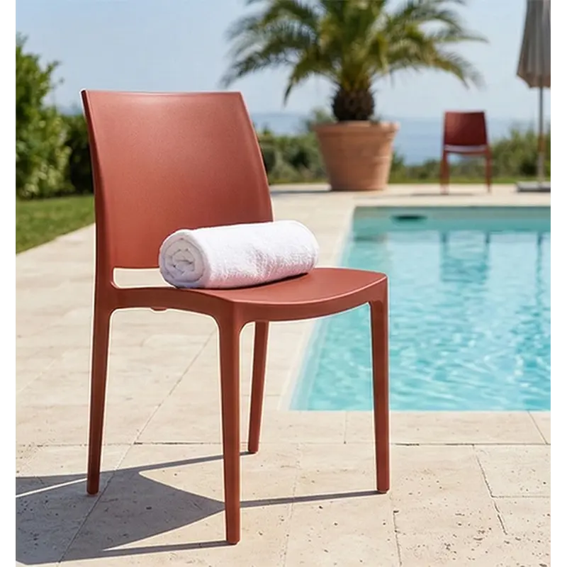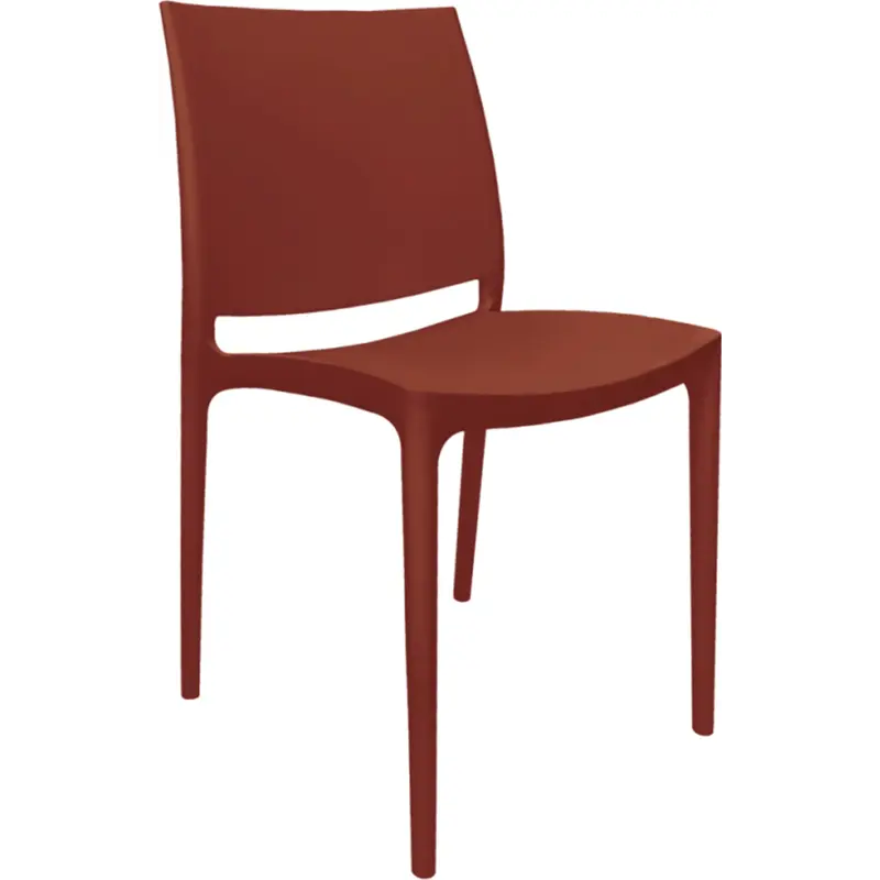 Гладка поверхня легко очищається і не вимагає складного догляду. Широке сидіння та висока спинка забезпечують комфортну посадку. Стільці можна штабелювати для зручного зберігання. Модель підходить для домашнього та комерційного використання.