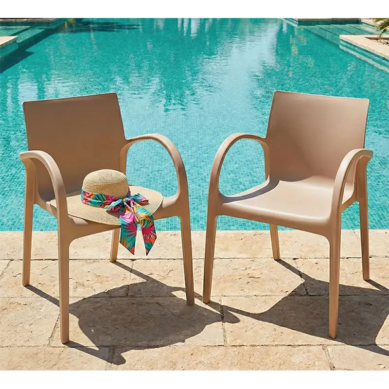 Гладка поверхня легко очищається і не вимагає складного догляду. Широке сидіння, висока спинка і підлокітники забезпечують комфортну посадку. Стільці можна штабелювати для зручного зберігання. Модель підходить для домашнього та комерційного використання.