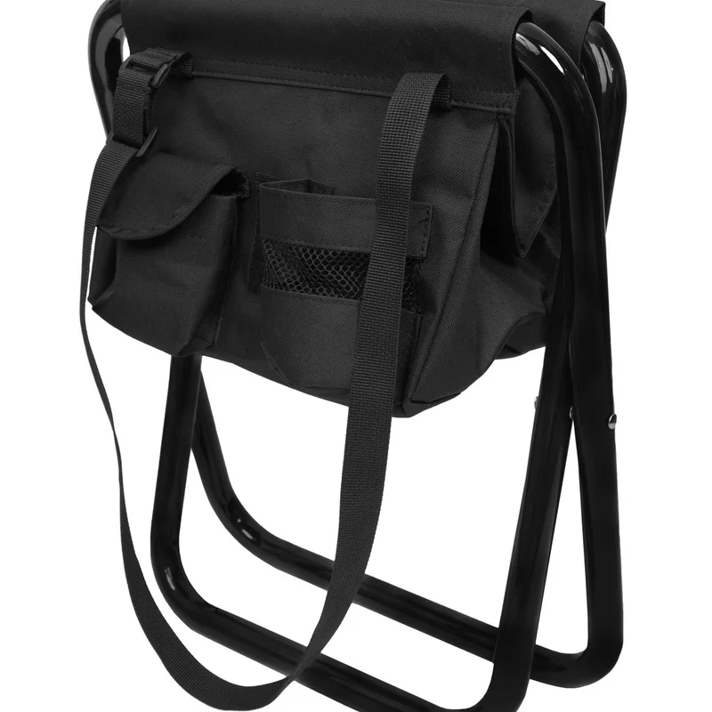 Конструкція проста і ефективна — стілець дуже легко складається/розкладається й має невелику вагу, забезпечуючи комфорт користування, транспортування та зберігання. Стільчик обладнаний сумкою на блискавці із двома додатковими бічними відділенням, одне з яких закритого типу (на липучці), а інше — відкрите для швидкого доступу. Подовжений регульований ремінець дозволяє зручно переносити стільчик на плечі.