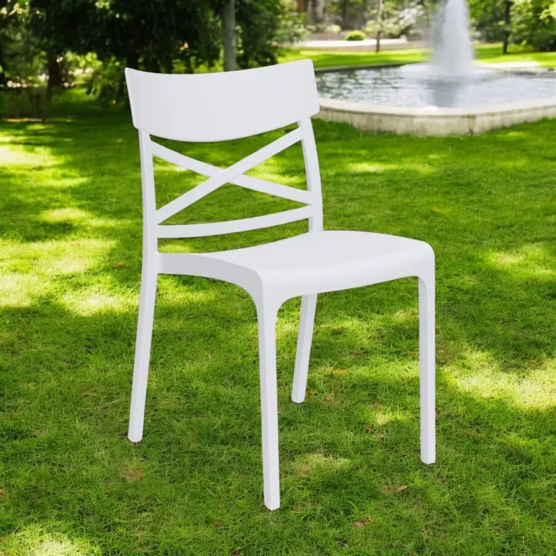 Стілець садовий пластиковий Bica Croix — це оптимальне рішення для відкритих місцевостей, таких як сад, тераса, зона барбекю чи пляж. Вишуканий білий колір прикрасить будь-який інтер’єр чи екстер’єр, а продумана конструкція створює максимальний комфорт.Особливості товару Крісло пластикове Bica має злегка вигнуту ергономічну спинку, що забезпечує комфортне тривале перебування.; Стійкість до умов навколишнього середовища: не піддається ржавінню та гниттю; Водонепроникний та стійкий до УФ-випромінювання матеріал забезпечує стійкість кольору; Легке миття та чищення завдяки глянцевій поверхні; Конструкція передбачає штабелювання.Крім основних функцій, стілець пластиковий Bica Croix зарекомендував себе як виріб для довготривалого використання. Висока якість пластикової рами забезпечує його стійкість до деформацій, а сучасний дизайн підходить для різних стилів декору.