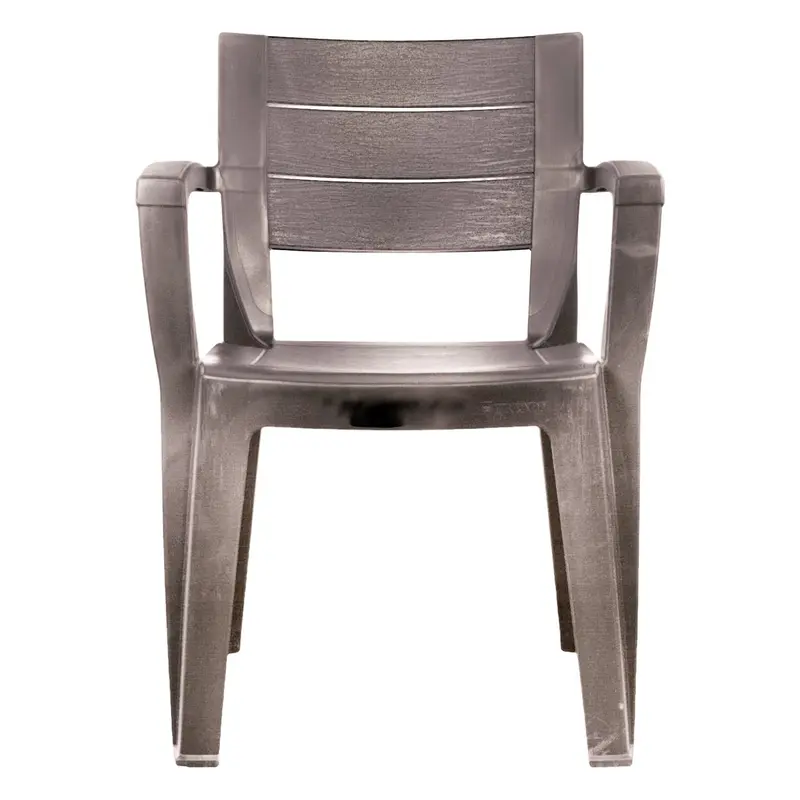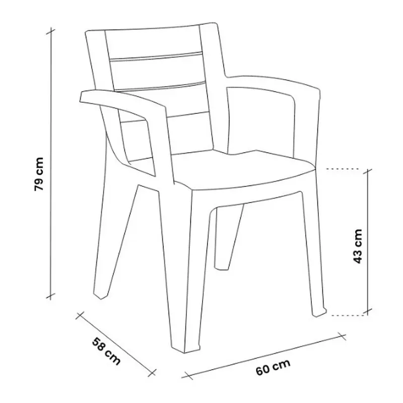 Стілець садовий пластиковий Bica Emma — це ідеальне рішення для відкритих місцевостей, таких як сад, тераса, зона барбекю чи пляж. Вишуканий графітовий колір прикрасить будь-який інтер’єр чи екстер’єр, а продумана конструкція створює максимальний комфорт.Особливості товару Крісло пластикове має широкі підлокітники забезпечують комфорт під час відпочинку; Ергономічна спинка з вентильованими отворами для циркуляції повітря; Стійкість до впливів довкілля: пластикові стільці для дачі від Bica не схильні до іржі та гниття; Водонепроникний та стійкий до УФ-випромінювання матеріал забезпечує стійкість кольору; Легке миття та чищення завдяки глянцевій поверхні; Конструкція передбачає штабелювання.Крім основних функцій, садові меблі Bica зарекомендували себе як виріб для довготривалого використання. Висока якість пластикової рами забезпечує його стійкість до деформацій, а сучасний дизайн підходить для різних стилів декору.