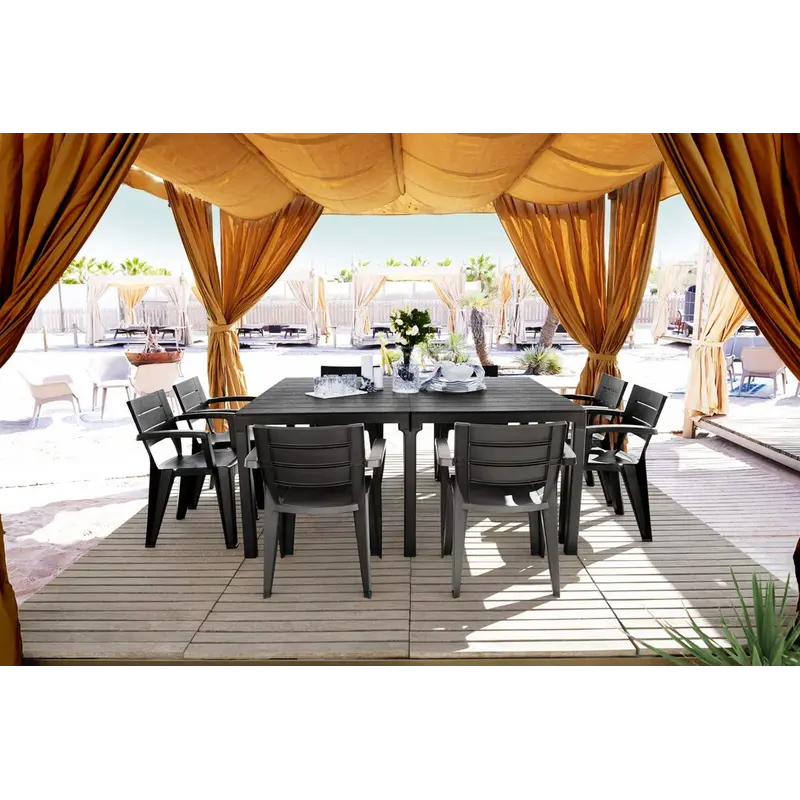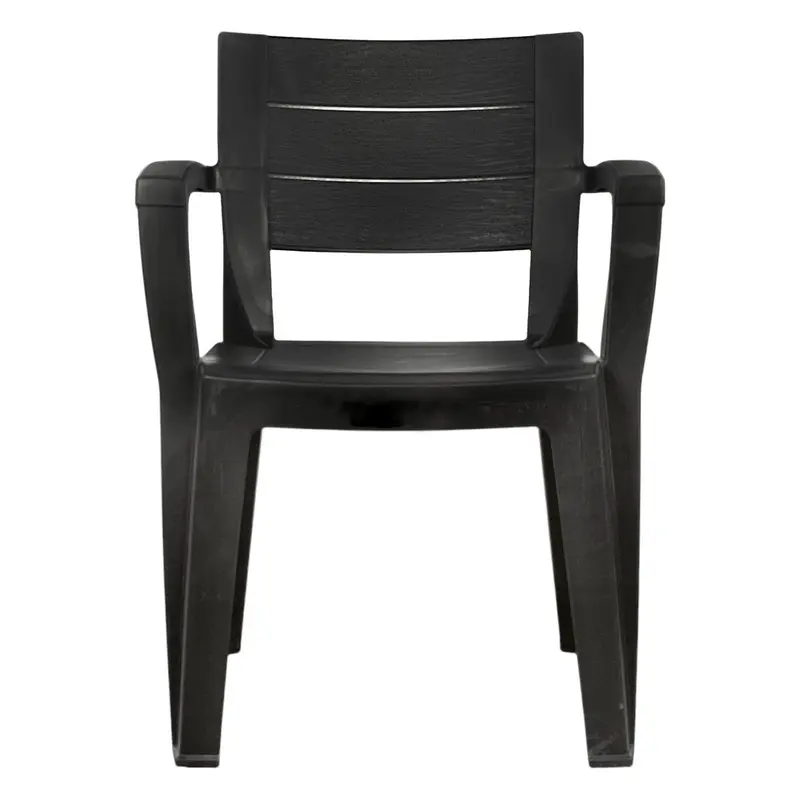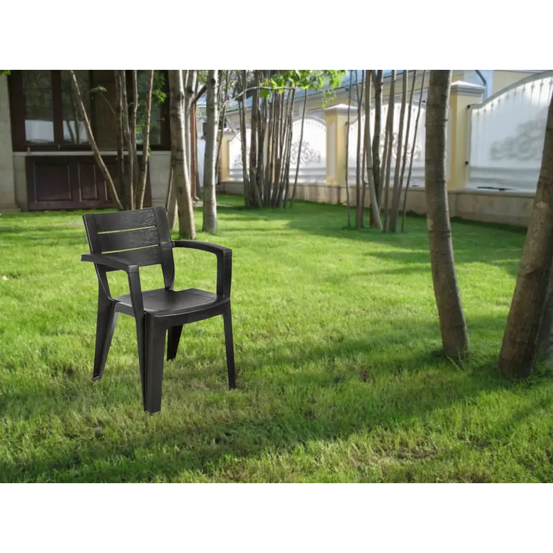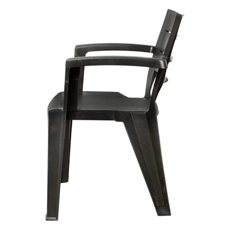 Стілець садовий пластиковий Bica Emma — це ідеальне рішення для відкритих місцевостей, таких як сад, тераса, зона барбекю чи пляж. Вишуканий графітовий колір прикрасить будь-який інтер’єр чи екстер’єр, а продумана конструкція створює максимальний комфорт.Особливості товару Крісло пластикове має широкі підлокітники забезпечують комфорт під час відпочинку; Ергономічна спинка з вентильованими отворами для циркуляції повітря; Стійкість до впливів довкілля: пластикові стільці для дачі від Bica не схильні до іржі та гниття; Водонепроникний та стійкий до УФ-випромінювання матеріал забезпечує стійкість кольору; Легке миття та чищення завдяки глянцевій поверхні; Конструкція передбачає штабелювання.Крім основних функцій, садові меблі Bica зарекомендували себе як виріб для довготривалого використання. Висока якість пластикової рами забезпечує його стійкість до деформацій, а сучасний дизайн підходить для різних стилів декору.