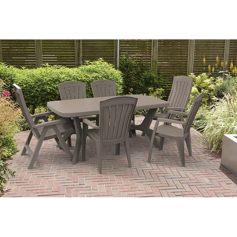 Стілець садовий пластиковий Keter Santorini, бежево-сірий — це зручне й практичне рішення для облаштування відкритих просторів. Він виготовлений із міцного пластику, стійкого до погодних умов, і має універсальний дизайн, що легко вписується в будь-який ландшафт. Ергономічна форма та широкі підлокітники забезпечують комфорт навіть під час тривалого сидіння. Стілець ідеально підійде для дачі, тераси, альтанки або вуличного кафе. Він простий у догляді та легко переноситься завдяки малій вазі, а можливість штабелювання дозволяє заощаджувати місце під час зберігання.Переваги Стільці для вулиці Santorini не вигорають на сонці завдяки стійкості до ультрафіолетового випромінювання — зберігають насичений колір навіть за тривалого використання на вулиці; Не потребує мийних засобів — достатньо промити водою або протерти вологою ганчіркою, що спрощує догляд і заощаджує час; Міцна конструкція витримує навантаження до 110 кг, гарантуючи довговічність і безпеку при щоденному використанні; Легко штабелюється — кілька стільців можна складати один на одного, економлячи місце для зберігання в міжсезоння; Ергономічна вигнута спинка забезпечує зручну посадку, підтримуючи природне положення спини; Пластмасові стільці Santorini стійкі до корозії та вологи - не іржавіють, не гниють і не деформуються; Сучасний стильний вигляд гармонійно поєднується з будь-яким вуличним інтер’єром і іншими елементами пластикових меблів.