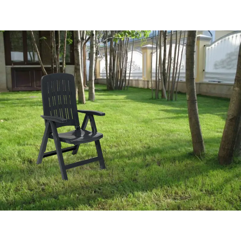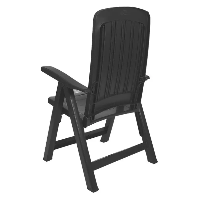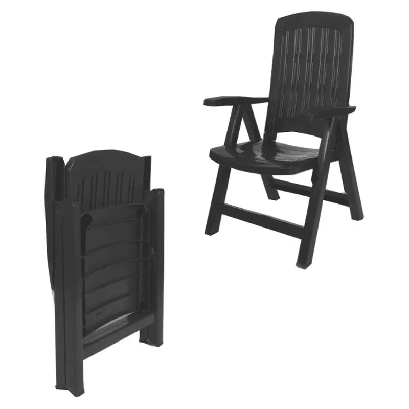 Стілець садовий пластиковий Bica Carmen — це ідеальне рішення для облаштування відкритих просторів, таких як сад, тераса, зона барбекю чи пляж. Вишуканий графітовий колір прикрасить будь-який інтер’єр чи екстер’єр, а продумана конструкція створює максимальний комфорт.Особливості товару Крісло пластикове для саду Bica Carmen має механізм регулювання кута нахилу спинки (від вертикального до майже горизонтального: 1 - вертикальне; 2-3-4 - проміжні; 5 - майже горизонтальне) для вдосконаленого відпочинку; Складаний стілець має широкі підлокітники забезпечують комфорт під час відпочинку; Висока ергономічна спинка з вентильованими отворами для циркуляції повітря; Стійкість до умов навколишнього середовища: не піддається ржавінню та гниттю; Водонепроникний та стійкий до УФ-випромінювання матеріал забезпечує стійкість кольору; Легке миття та чищення завдяки глянцевій поверхні; Складна конструкція для зручного транспортування та зберігання.Крім основних функцій, пластмасові стільці Bica Carmen зарекомендували себе як виріб для довготривалого використання. Висока якість пластикової рами забезпечує його стійкість до деформацій, а сучасний дизайн підходить для різних стилів декору.