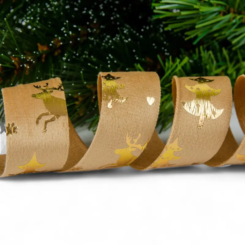 Святкова декоративна стрічка Chomik бежевого кольору стане витонченим акцентом у будь-якому новорічному оформленні. Її текстильна структура приємна на дотик, а стриманий відтінок гармонійно поєднується з іншими елементами декору. Стрічка довжиною 2,7 метра ідеально підходить для оформлення подарунків, ялинок, вінків або столових композицій, створюючи атмосферу тепла і затишку.Особливості Нейтральний бежевий колір дозволяє комбінувати стрічку з іншими святковими прикрасами в класичних і сучасних палітрах. Текстильна основа добре тримає форму, тому стрічка зручна для створення бантів, завитків чи декоративних вставок. Довжина 2,7 м надає достатньо матеріалу для реалізації різноманітних декораторських задумів. Може використовуватись як акцент у флористичних або інтер’єрних композиціях.Варіанти використання Оформлення новорічних подарунків та сувенірів, створення елегантного й охайного вигляду. Прикрашання ялинки, гірлянд, підсвічників або інших елементів інтер’єру. Декор фотозон, вітрин, вхідних дверей або банкетних залів. У творчих і рукодільних проектах: скрапбукінг, флористика, новорічні композиції.*Реальний колір товару може кілька відрізнятися від зразків, представлених на сайті, в залежності від технічних налаштувань Вашого екрану, а також, враховуючи особливості матеріалу, відтінок товару може змінюватися в залежності від освітлення.