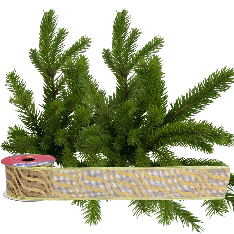 Декоративна стрічка Chomik із візерунком "Хвилі" — це елегантний акцент для святкового оформлення, який поєднує в собі текстильну м’якість і вишуканий блиск. Золотистий колір у поєднанні з хвилястим візерунком створює ефект мерехтіння, який змінюється в залежності від освітлення. Завдяки ширині 5 см стрічка виглядає виразно і підходить як для великих, так і для точкових декоративних рішень. Вона зручно фіксується на ялинкових гілках, подарункових упаковках або елементах інтер’єру, зберігаючи форму та декоративність навіть після багаторазового використання.Особливості Золотистий хвилястий візерунок створює ефект руху й блиску, що додає композиціям динаміки та святковості. Текстильна основа забезпечує легкість у використанні, гнучкість і здатність зберігати форму в декоративних вузлах або стрічкових оформленнях. Завдяки універсальній ширині стрічка підходить для різноманітних варіантів оформлення — від ялинки до настільних композицій. Візерунок "хвилі" додає оформленню не тільки святковості, а й нотку витонченості, що робить стрічку доречною в сучасному декорі.Варіанти використання Прикрашання ялинки або створення пишних бантів, що додають дереву святкової фактурності. Оздоблення святкових гірлянд, вінків, декоративних композицій для столу чи підвіконь. Оформлення подарункових коробок із додаванням золотої стрічки як акценту. Застосування у фотозонах, декорі вітрин або тематичних інсталяціях у публічних просторах, включаючи зовнішнє оформлення під навісом.*Реальний колір товару може дещо відрізнятися від зразків, представлених на сайті, в залежності від технічних налаштувань Вашого екрана, а також, враховуючи особливості матеріалу, відтінок товару може змінюватися в залежності від освітлення.