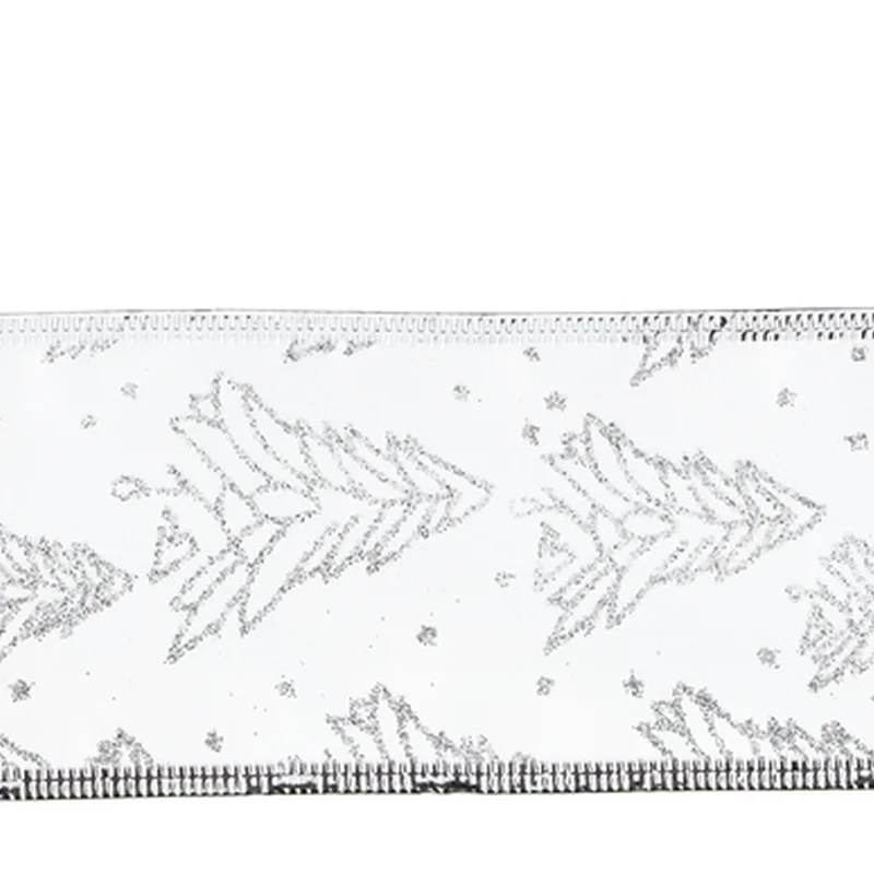 Стрічка декоративна з блискучим візерунком "Chomik" 6 см х 2,7 м, великі ялинки срібло