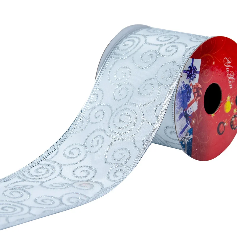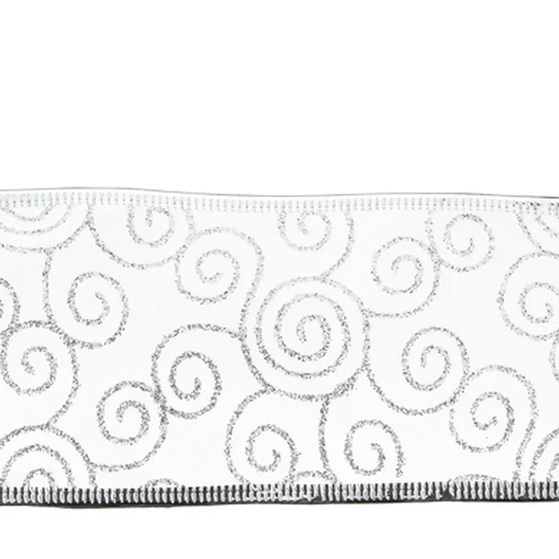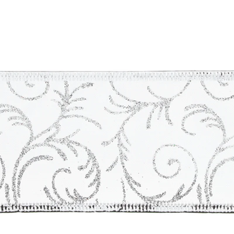Стрічка декоративна з блискучим візерунком "Chomik" 6 см х 2,7 м, завитки срібло