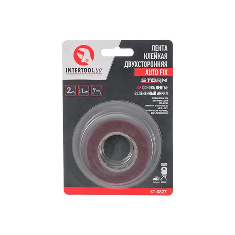 Стрічка клейка двостороння AUTO FIX, 9 мм * 2 м * 1 мм, сіра, спінений акрил, STORM INTERTOOL KT-0827