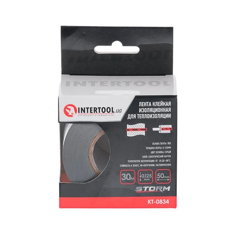 Стрічка клейка ізоляційна, для теплоізоляції, 50 мм * 30 м * 0,125 мм, Storm INTERTOOL KT-0834