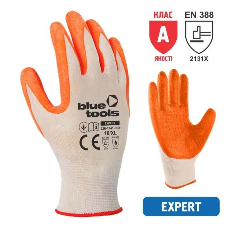 Стрейчеві рукавиці з латексним покриттям BLUETOOLS Recodrag (12 пар, XL) (110-1203-10-OR)
