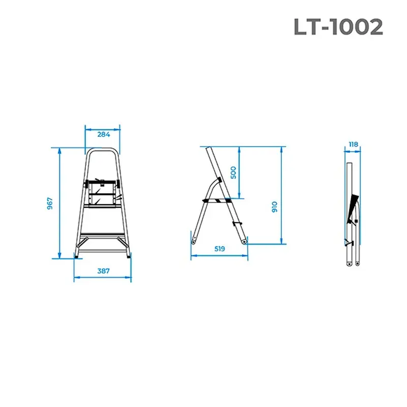 Стрем'янка з алюмінію, 2 сходинки, висота до платформи - 410 мм INTERTOOL LT-1002