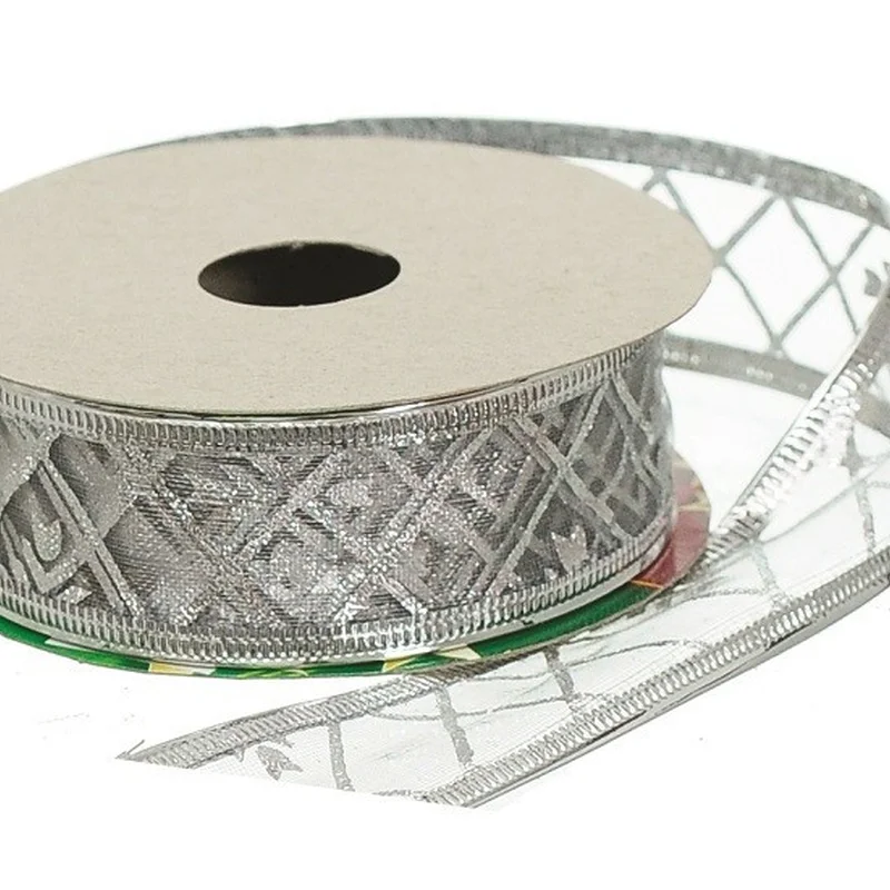 Стрічка декоративна 2,5см x 4,5м, поліестер, срібна кайма