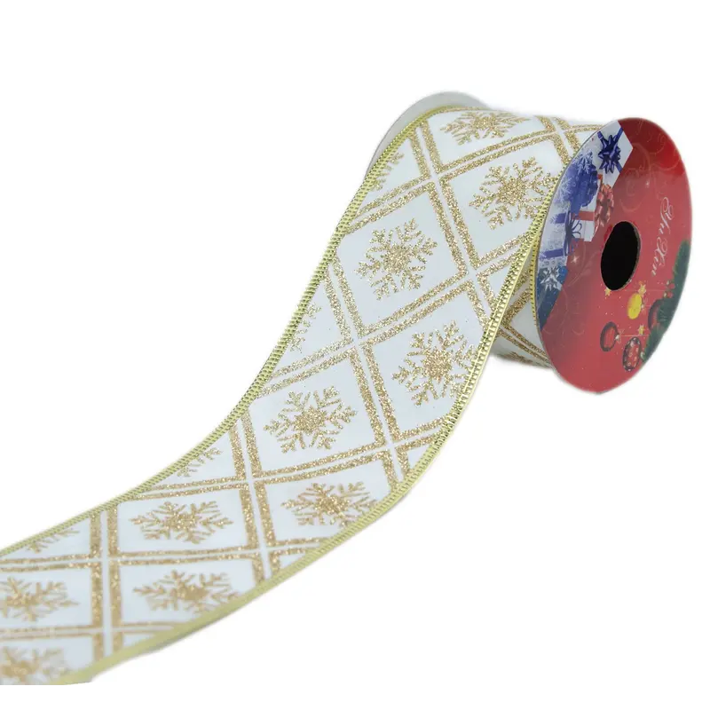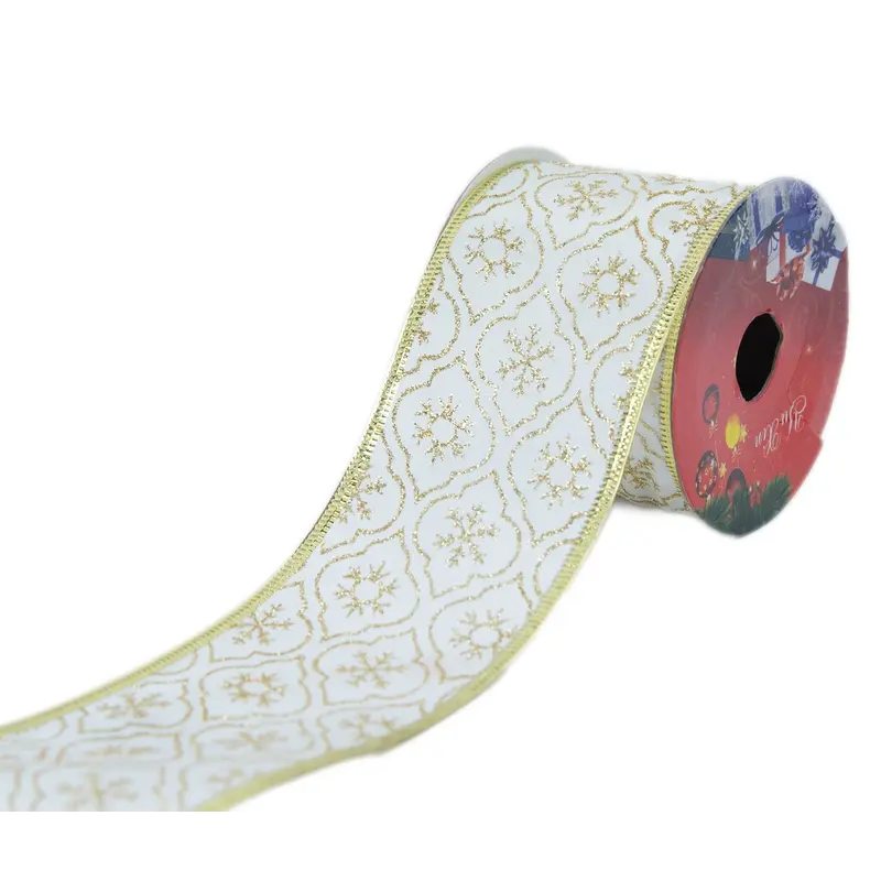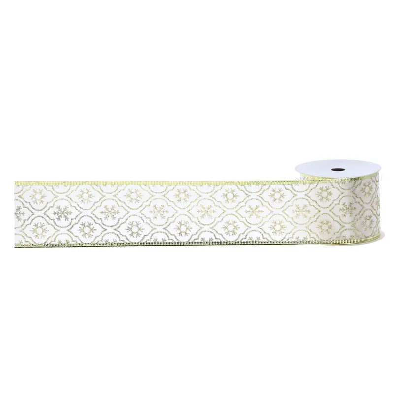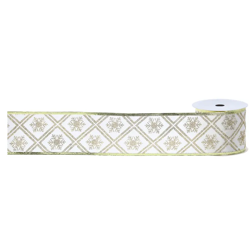 Стрічка декоративна з блискучим візерунком "Chomik" 6 см х 2,7 м, сніжинки-ромб золото в асортименті