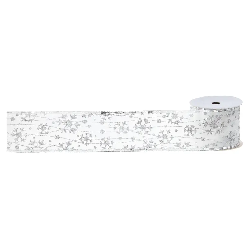 Стрічка декоративна з блискучим візерунком "Chomik" 6 см х 2,7 м, сніжинки срібло