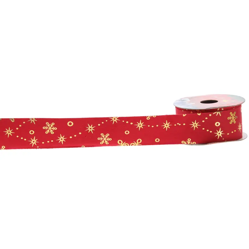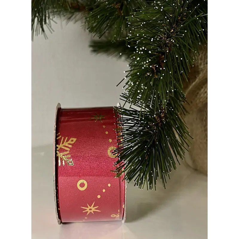 Стрічка декоративна з візерунком "Сніжинки" Chomik 2,7 м, висота 3,8 см, червона