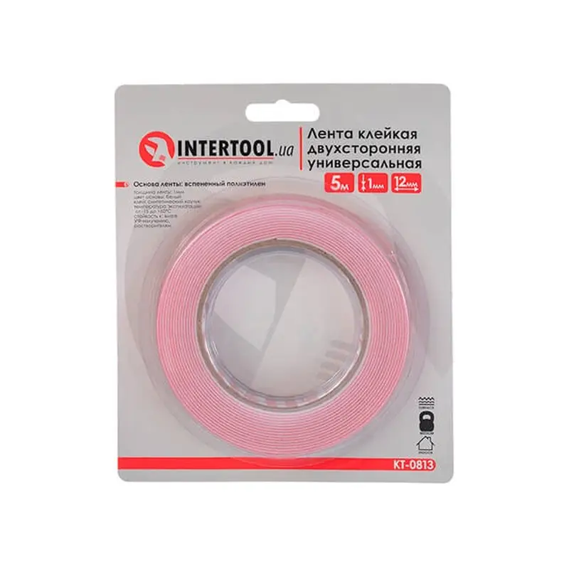Стрічка клейка двостороння універсальна 12 мм * 5 м * 1 мм, біла, спінений поліетилен INTERTOOL KT-0813