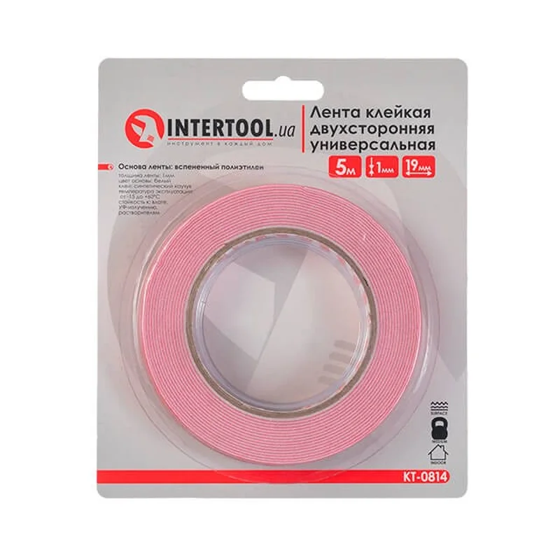Стрічка клейка двостороння універсальна, 19 мм * 5 м * 1 мм, біла, спінений поліетилен INTERTOOL KT-0814