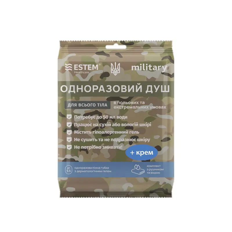 Сухий душ для військових MILITARY COMFORT PLUS (Пінна губка + рушник + саше з водою + саше з кремом)