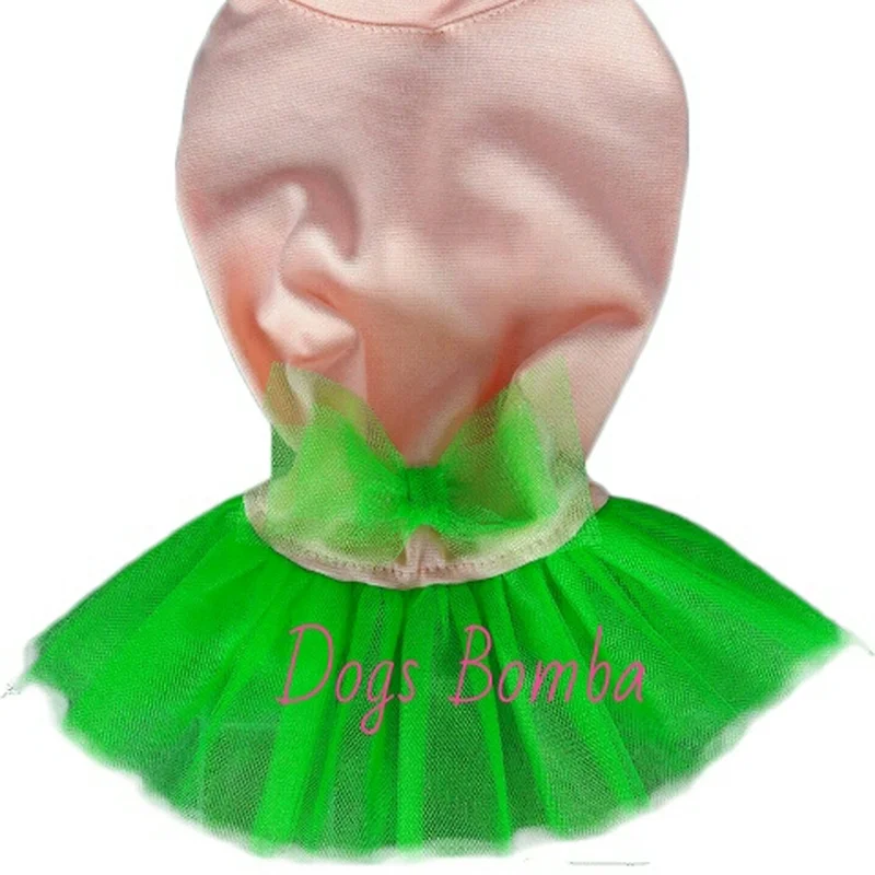 плаття трикотажне; спідниця і бант з фатину, конструкція цільна без застібок.