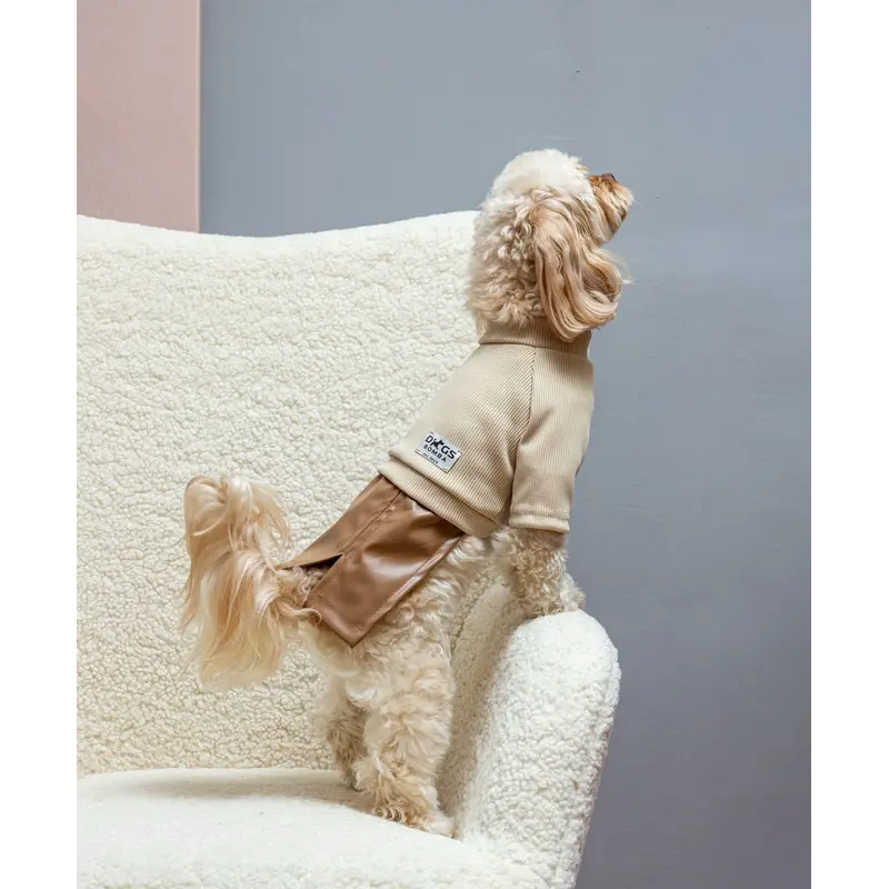 Сукня зі шкіряною спідницею карамель P-42