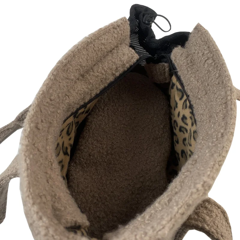 букле-шерсть баранчик (60% вовна, 40% поліестер) всередині м'яка, флісова, є подушка розмір 1: висота 23 см, довжина 32 см, ширина 15 см розмір 2: висота 30см, довжина 37 см, ширина 23см кишеня для смаколиків