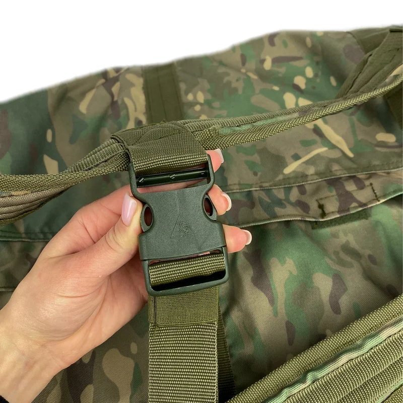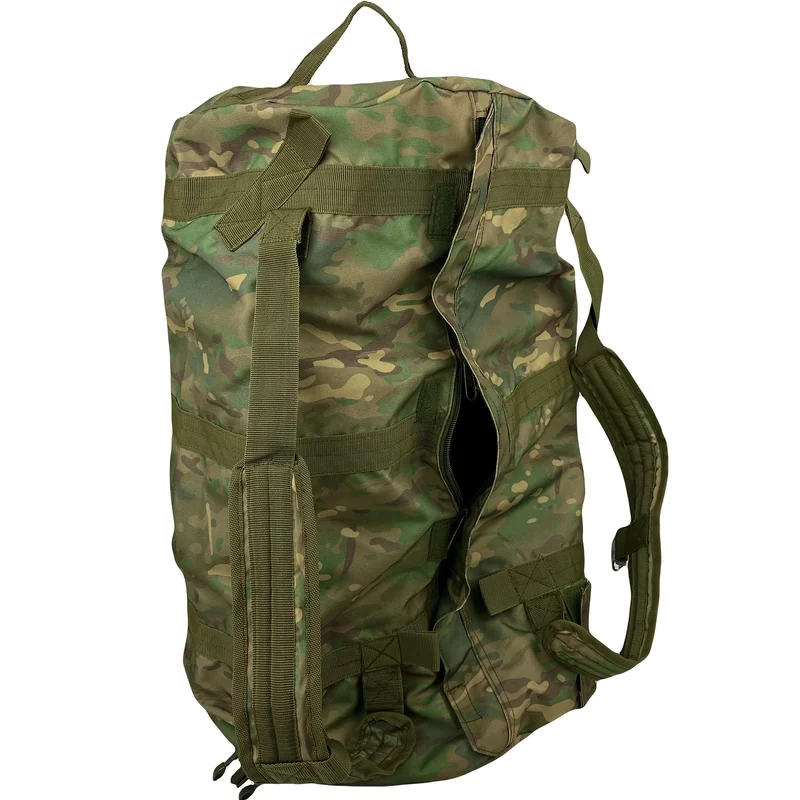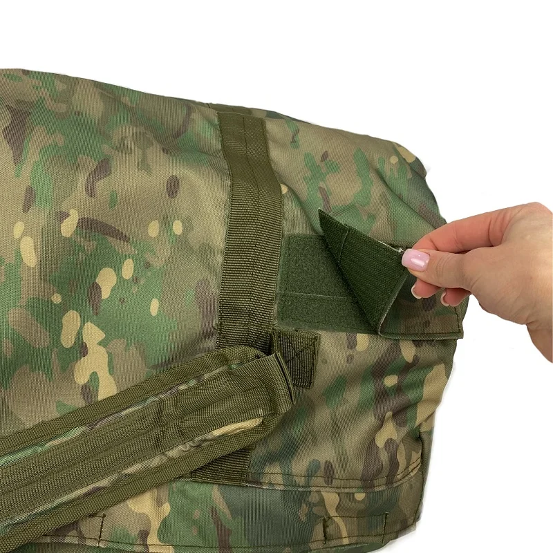 Сумка имеет две широкие ручки, одновременно выступающие лямками, если носить ее как рюкзак. На лямки можно цеплять молле-совместимые элементы, а их длина регулируется ремнем с рамкой.