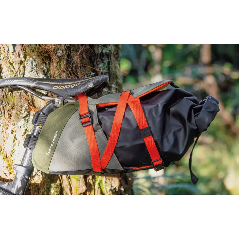 Birzman Packman Saddle Pack (with waterproof carrier) – оригинальный подседельный рюкзак является частью большой серии, оснащен стойкой для седла и регулируемыми боковыми компрессионными ремнями для повышения устойчивости и минимизации дребезжания во время поездок.