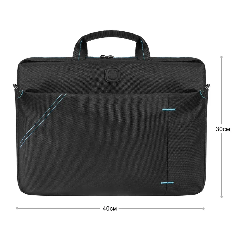 Сумка для ноутбука 15,4-16" в класичному дизайні. Робоче відділення для флешок, ручок, дисків, журналів та документації. Наскрізна задня кишеня для легкої фіксації сумки на телескопічній ручці багажного візка також можна використовувати як відділення для документації. Передня кишеня для зарядки та мишки. Наявність м’якого регульованого знімного плечового ременя. Накладна задня кишеня з фіксацією на "липучці". Матеріал: міцний, водовідштовхувальний нейлон 420D.