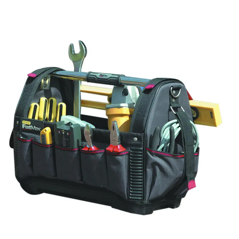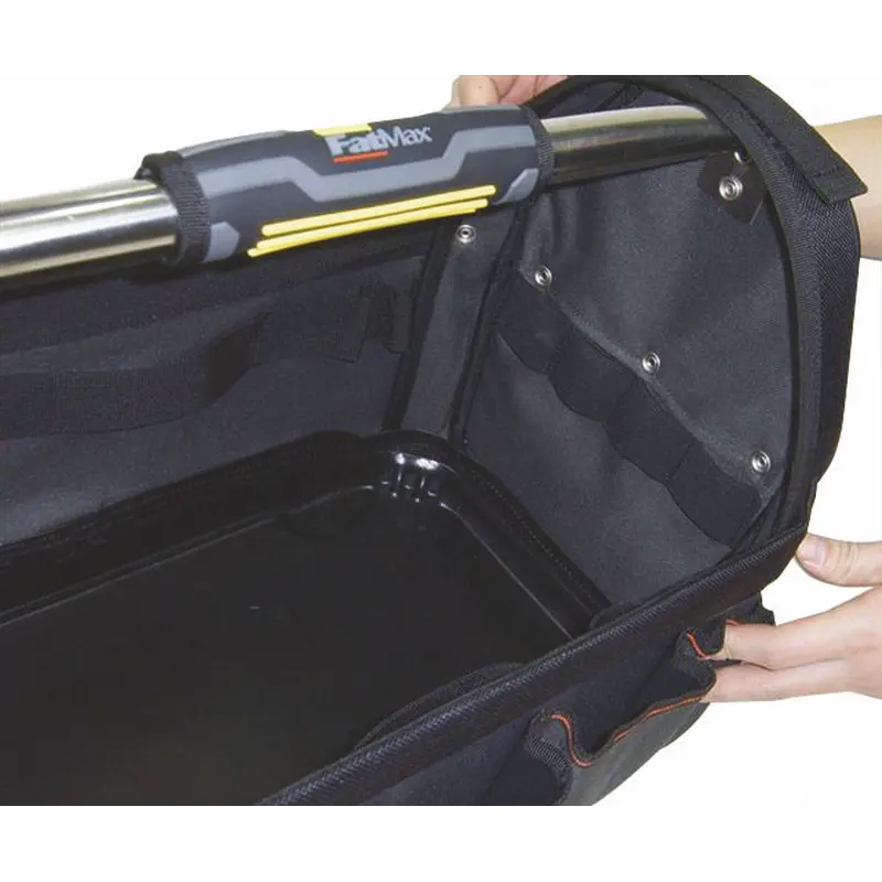 Сумка для інструменту відкрита 48см FatMax Open Tote STANLEY 1-93-951 Сумка для інструменту "FatMax Open Tote" відкрита.Жорстке і водонепроникне дно пластмасовеЕргономічна гумова накладка на ручціМістка конструкція з посиленою сталевим профілем рамою, з простим доступом до вмістуНеоплачений високоміцний ремінь для зручностіМіцна нейлонова тканина 600x600Еластичні ремінні петлі всередині для розміщення інструменту для максимальної організації зберіганняРемені з липучкою з не допускають прослизання гумовими накладками для кріплення рівняЗакрите відділення з утримувачем для сверделВідділення для розміщення ножівки, оброблене зсередини балістичним нейлоном, з застібкою - липучкоюВеликий бічний кишеню для кабелюСталевий тримач для рулеткиВисокоміцна трубчаста сталева ручка