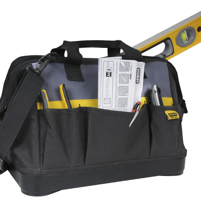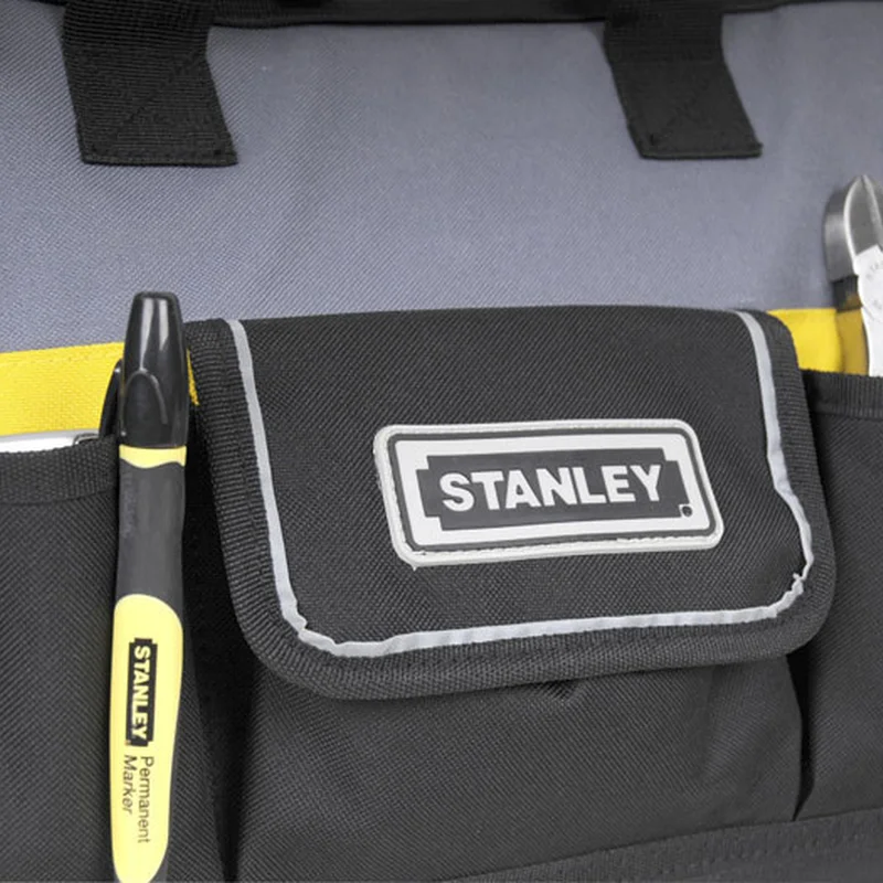 Сумка інструментальна 16" (23.5 x 44.7x27.5см) STANLEY 1-96-183 Сумка для інструменту "Basic Stanley Open Mouth" 16".Міцна нейлонова тканина 600x600Конструкція, що забезпечує легкий доступ до вмісту - сумка може стояти у відкритому стані не складаючисьБезліч внутрішніх і зовнішніх кишень для оптимального розміщення інструментуРегульований наплічний ремінь для зручностіЗакритий кишеню на лицьовій стороні для зберігання дрібних деталейМіцне посилене водонепроникне дно пластмасове