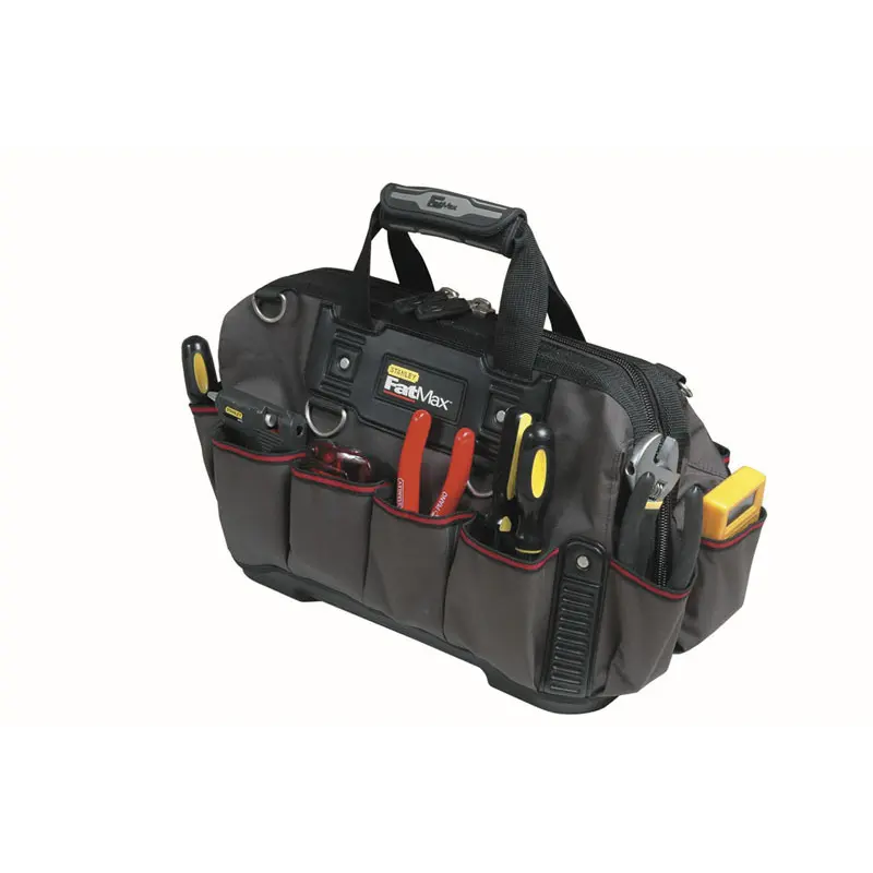 Сумка інструментальна FatMax 48см STANLEY 1-93-950 Сумка для інструменту "FatMax".Жорстке і водонепроникне дно пластмасовеМісця кріплення ручок посилені для максимального терміну службиЕргономічна гумова накладка на ручкахМістка конструкція з простим доступом до вмістуЗручні застібки-блискавкиНеоплачений високоміцний ремінь для зручностіМіцна нейлонова тканина 600x600В найбільш відповідальних місцях сумка посилена додатковими елементами з шкірозамінникаРемінні петлі всередині для розміщення інструменту