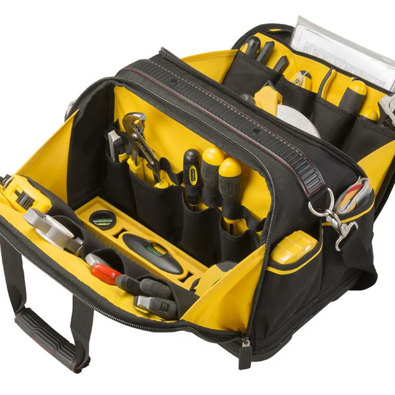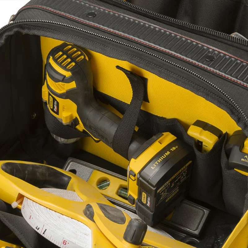 Сумка монтажника FatMax двостороння 43см STANLEY FMST1-73607 - Закритий передній кишеню- Наплічний ремінь з м'якою накладкою для зручності використання- Жорстка конструкція у відкритому стані забезпечує легкий доступ до вмісту- Два основних широко відкриваються відділення для забезпечення великого обсягу зберігання для ручного та електроінструменту- У відкритому стані видно весь вміст сумки, що дозволяє використовувати її в якості робочої станції- Максимальна організація зберігання за рахунок безлічі внутрішніх і зовнішніх кишень і петель- Міцне посилене дно пластмасове