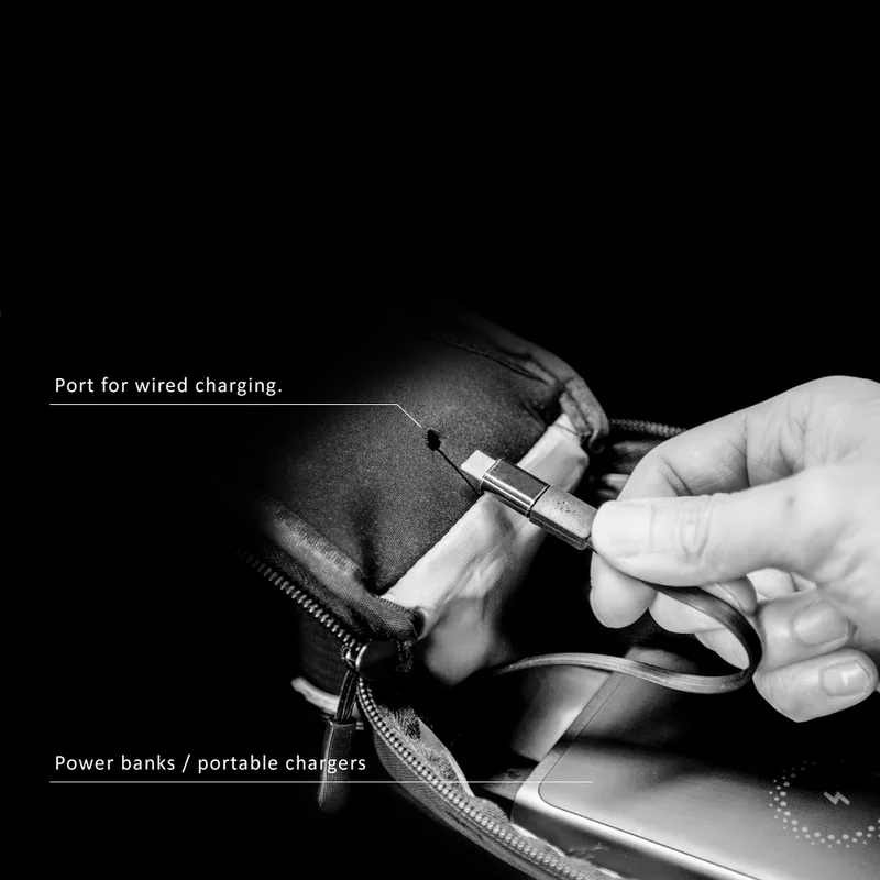 Navigator SB совместим как с проводной, так и беспроводной зарядкой. Для проводной зарядки имеется специальное отверстие в перегородке между отделениями, позволяющее провести провод к повербанку. Для беспроводной, можно вложить зарядное устройство в кармашек, параллельно телефону.