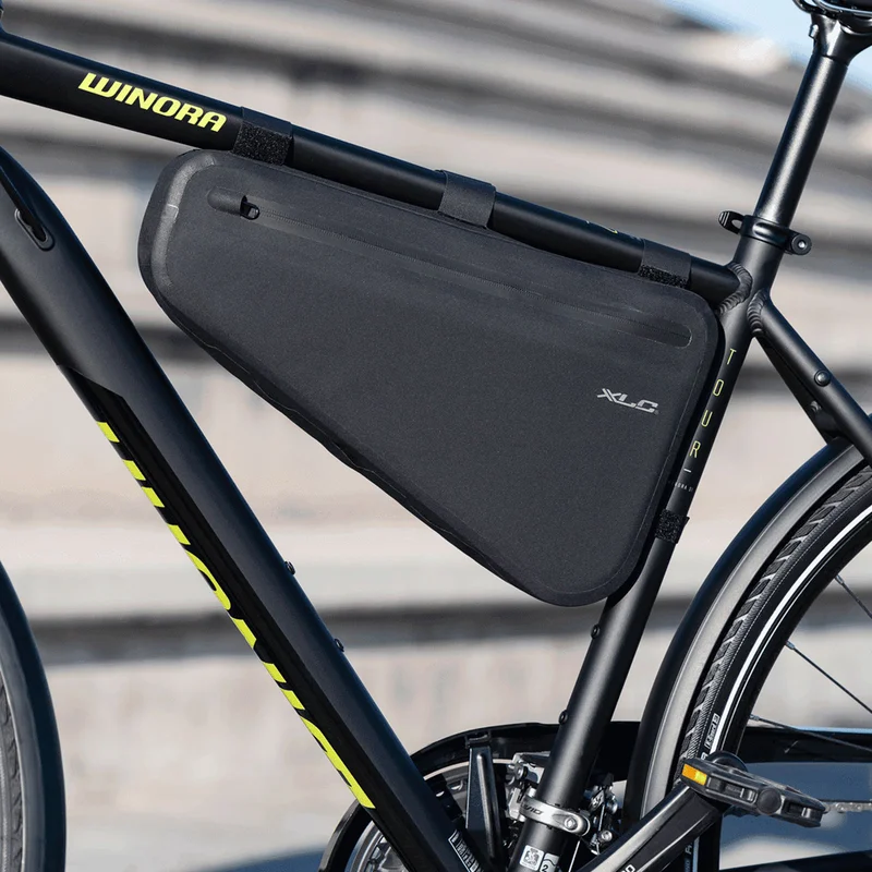 Сумка подрамная XLC, 40 x 6 x 23 см на две петли из водонепроницаемого материала водонепроницаемая молния застегивается на три липучки.
