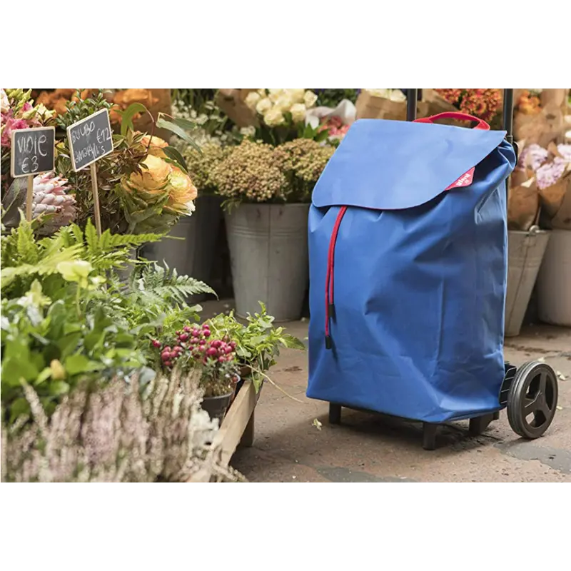 Сумка-візок Gimi Easy Blue (168431) - стильна і вмістка сумка для шопінгу. Водостійка тканина сумки, забезпечує захист від попадання вологи, пилу чи бруду всередину. У верхній частині сумки-візка по периметру розташована стяжка і накрита клапаном для забезпечення захисту від вологи під час опадів. Колеса діаметром 15 см дозволяють легко переміщати візок торговими центрами, ринками та міськими тротуарами. Сумка легко знімається з каркасу шасі за допомогою системи Easy-Click. Платформа легко складається до наступного використання або транспортування в автомобілі.