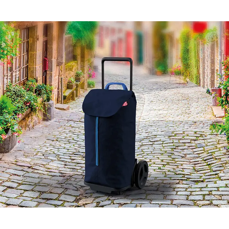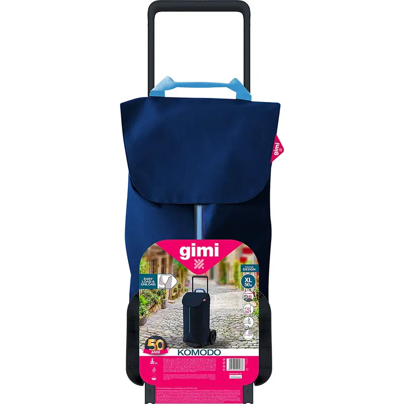 Сумка-візок Gimi Komodo Blue (168435) - стильна та містка сумка для шопінгу. Об'єм 50 літрів легко розмістить велику кількість покупок. Водостійка тканина забезпечує захист вмісту від зовнішніх факторів (дощ, сніг). Широка горловина сумки має стяжний шнур та вертикальну блискавку для зручності експлуатації. На тильній стороні всередині сумки розташована кишеня-гаманець на блискавці для зберігання дрібних предметів. Колеса діаметром 21 см дозволяють легко переміщати візок торговими центрами, ринками та міськими тротуарами. Сумка легко знімається з каркасу шасі за допомогою фірмової системи "easy-click". Платформа легко складається до наступного використання або транспортування в автомобілі. Функціональна сумка-візок Gimi Komodo 50 Blue (168435) стане ідеальним вибором для великої родини.