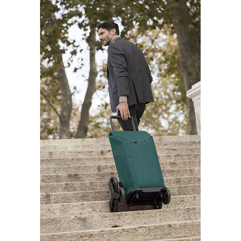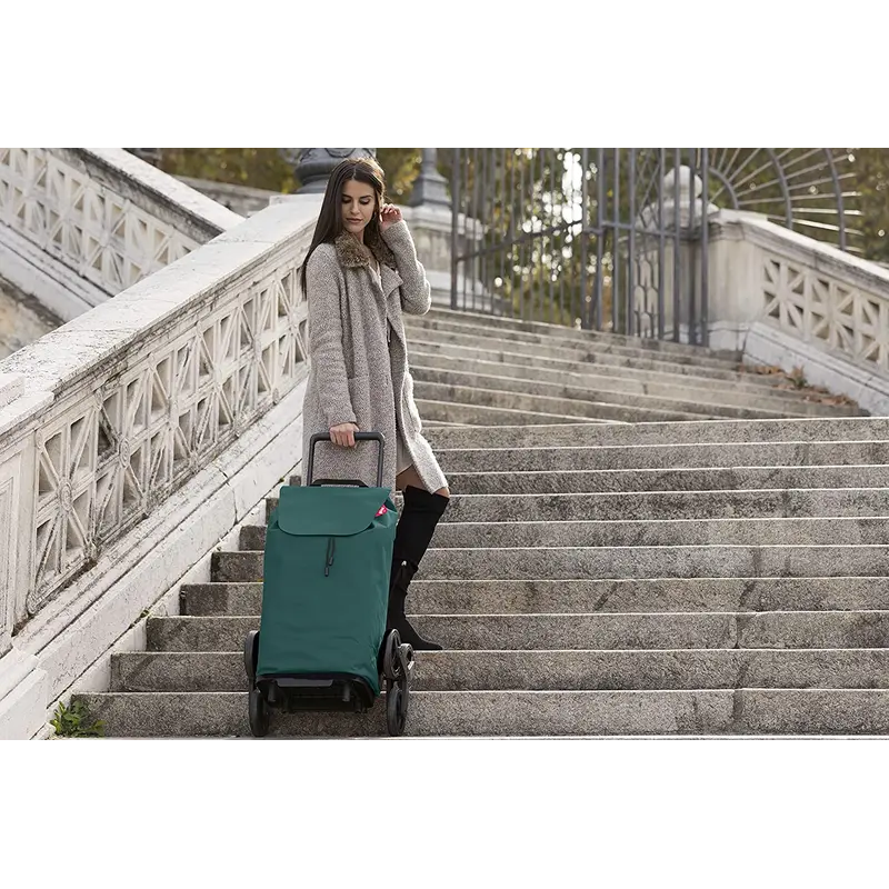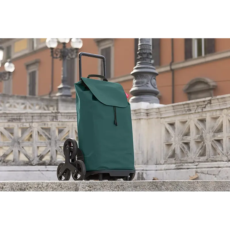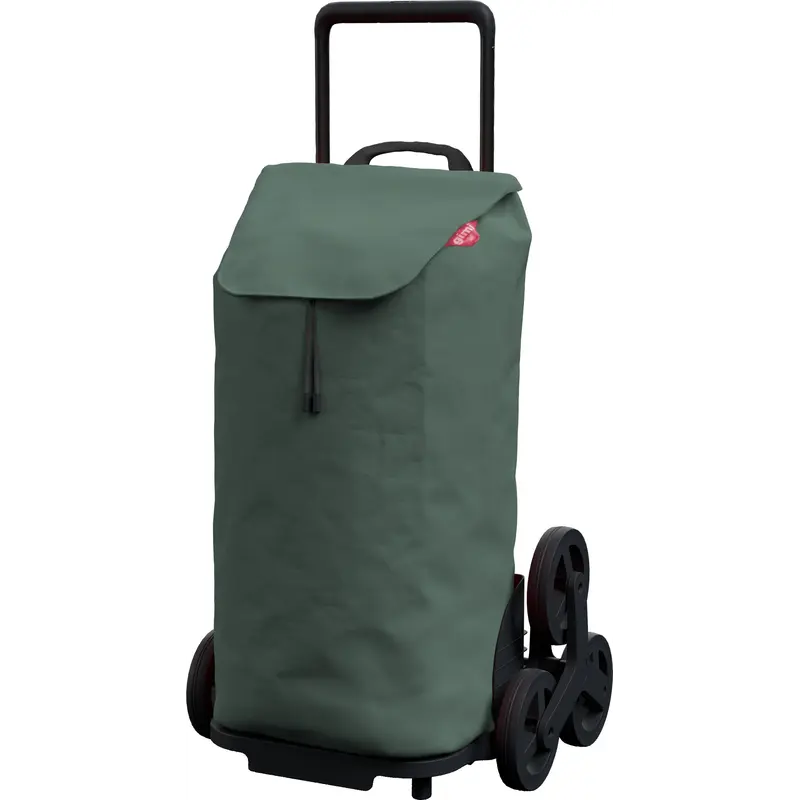 Оновлена модель сумки-візка Gimi Tris Green (168424), шасі якої оснащене двома блоками із трьох коліс, які дозволяють швидко долати сходи, бордюри та інші перешкоди під час руху вгору або вниз. Сумка-візок Gimi Tris 52 Green (168424) розрахована на об'єм 52 літри. Матеріал сумки із водозахисним покриттям, всередині розташована кишеня-гаманець на блискавці для зберігання дрібних предметів. Зручна широка горловина стягується шнуром із фіксатором і має захисний клапан.