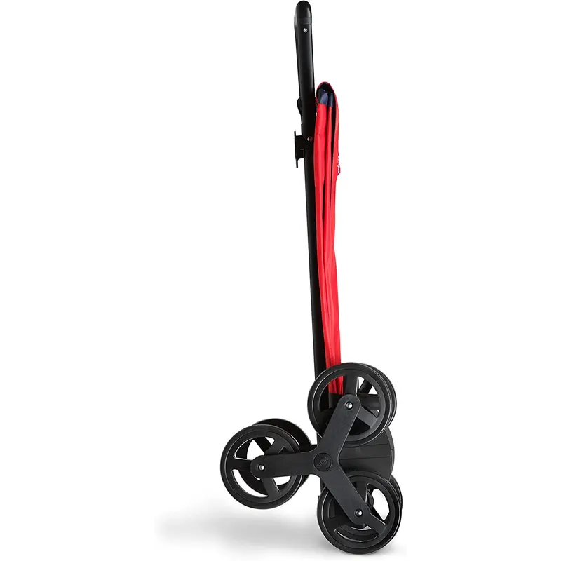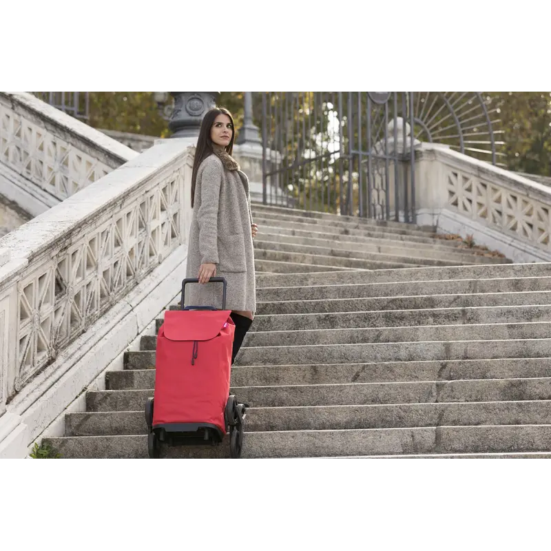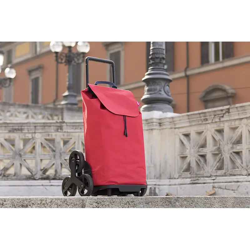 Оновлена модель сумки-візка Gimi Tris Red (168474), шасі якої оснащене двома блоками із трьох коліс, які дозволяють швидко долати сходи, бордюри та інші перешкоди під час руху вгору або вниз. Сумка-візок Gimi Tris 52 Red (168474) розрахована на об'єм 52 літри. Матеріал сумки із водозахисним покриттям, всередині розташована кишеня-гаманець на блискавці для зберігання дрібних предметів. Зручна широка горловина стягується шнуром із фіксатором і має захисний клапан.